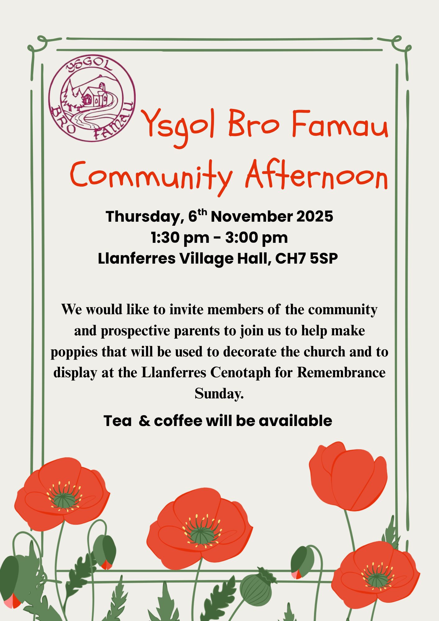 There is a warm welcome to parents, grandparents, prospective parents and members of the community to join us in making poppies.